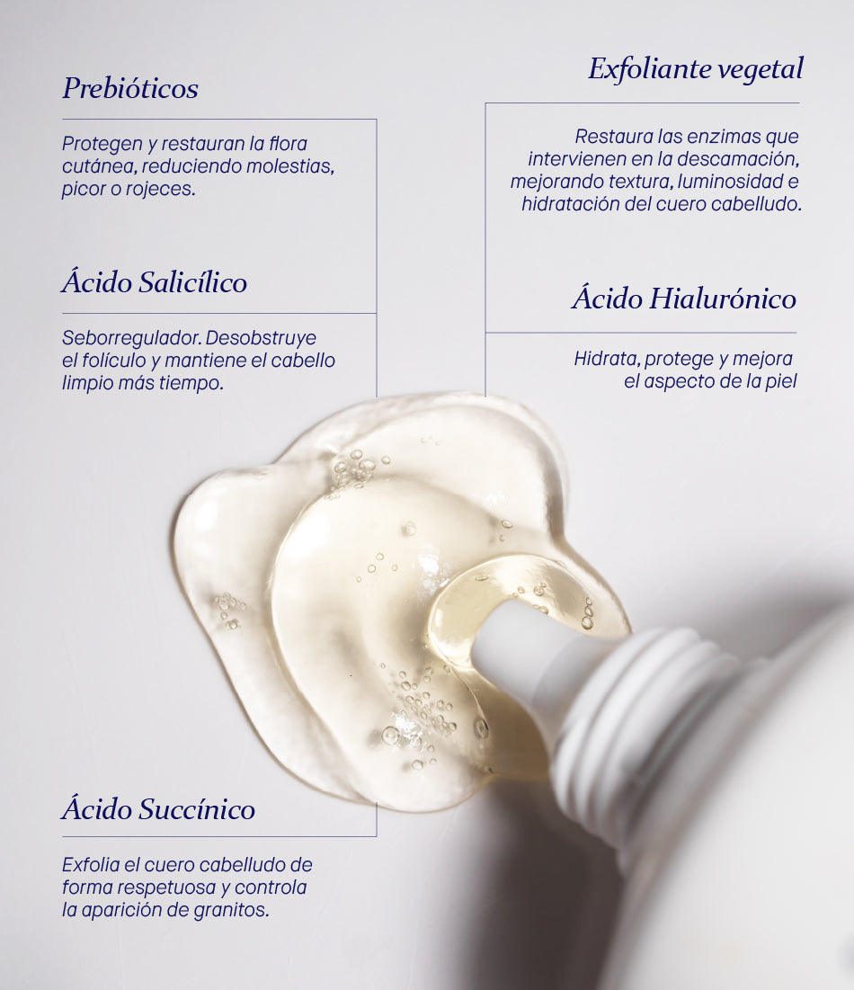 “Dado que el cuero cabelludo es piel, en él también se acumulan células muertas que pueden llegar a obstruir los folículos pilosos. Una exfoliación regular ayuda a eliminar estas células, favoreciendo un ambiente más saludable para el crecimiento del cabello”.