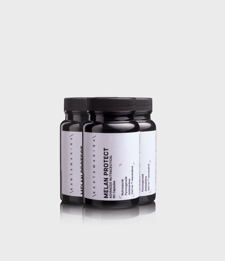 MELAN PROTECT es un suplemento de fotoprotección oral avanzado diseñado para uso durante todo el año. Su fórmula mejorada ayuda a prevenir y tratar manchas mientras protege la piel frente al daño inducido por radiación UV.
