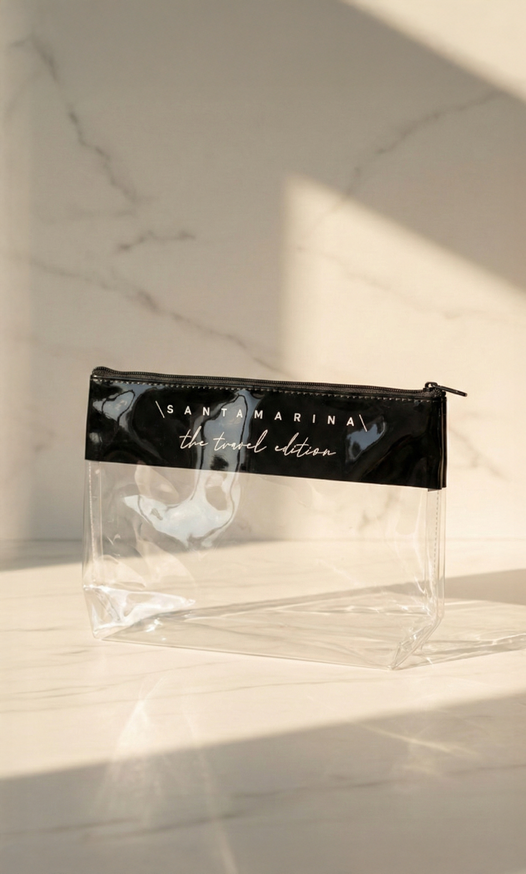 Neceser de viaje transparente, muy práctico para tus llevar tus productos cosméticos en avión.